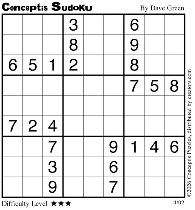 Each puzzle consists of a 9x9 grid containing given clues in various places. The object is to fill all empty squares so that the numbers 1 to 9 appear exactly once in each row, column and 3x3 box.